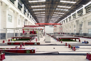 PC構(gòu)件生產(chǎn)流水線采用現(xiàn)代工業(yè)做法,工作模臺流轉(zhuǎn)作業(yè),實現(xiàn)住宅預(yù)制構(gòu)件批量生產(chǎn),將傳統(tǒng)現(xiàn)澆工地大量立體分散的工作,轉(zhuǎn)移至工廠,大幅提高了功效,同時大量節(jié)省人工。